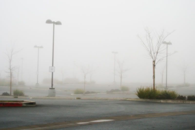 My gym's parking lot. I guess no one else felt the zeal to exercise this super foggy morning.