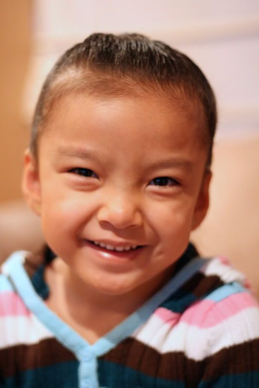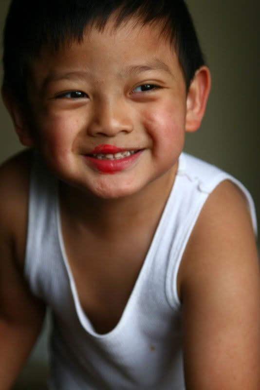 I left him alone with a stamp and a piece of paper with explicit instructions that he can only use the stamp on the paper. A few minutes later he ran upstairs laughing like a maniac looking like this.