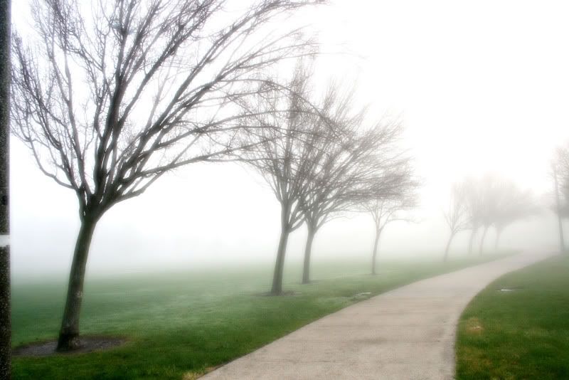 It was an incredibly foggy morning and I had some time to kill, so I figured I'd head to the park to take some pictures. Well, I got to the park and took a few feet in and got scared. I wanted to go to the playground further in, but it was so foggy. It was the perfect opportunity for someone to come and kill me and no one would be able to see it. So I snapped a few shots near the entrance and ran away.