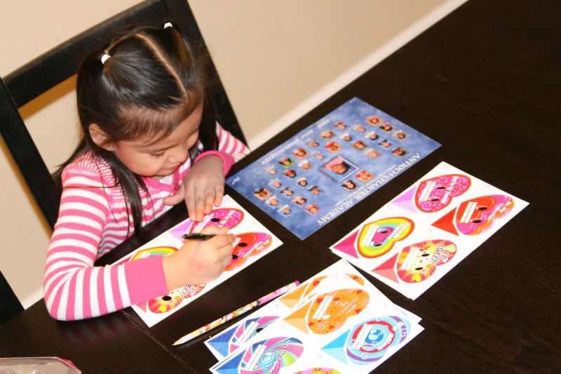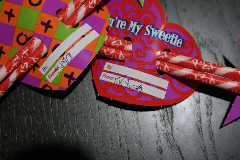Kaia normally writes her name how you see on the left Valentine. And then I saw the scribble on the right Valentine. I asked her what happened with that one. She said she used her mouth to write her name on that one.