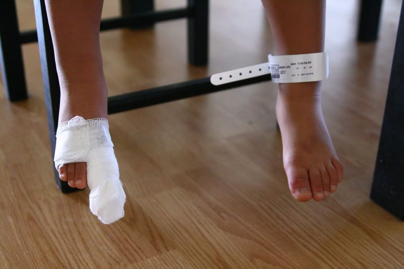 Somehow Aaron sliced a chunk out of his right big toe on the corner of Kaia's bed frame. We only spent 2 hours in the ER. Happy Valentine's Day!