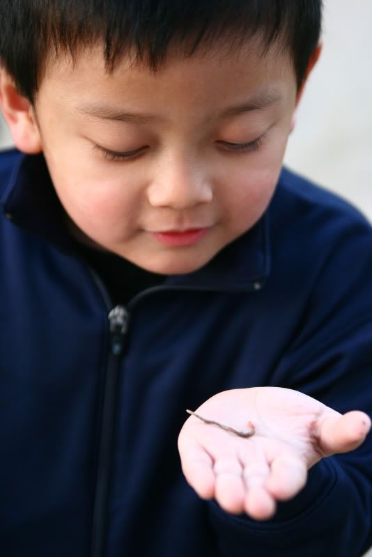 Aaron found a worm and liked playing with it. It grossed me the hell out. Boys. Sigh.
